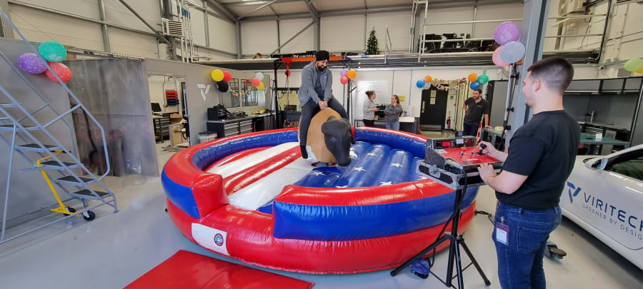 It will guarantee to gather a crowd who will watch with excitement to see who can hang on for the longest amount of time on our unpredictable bull!